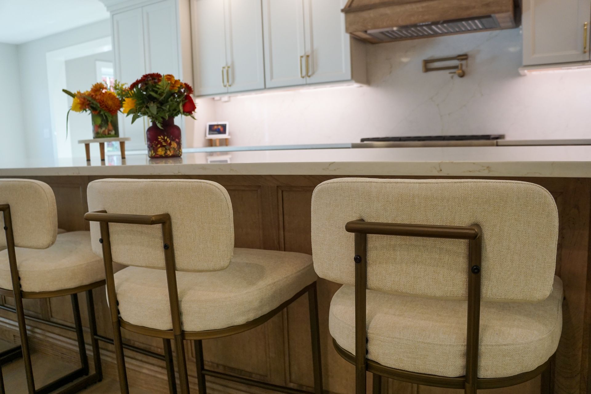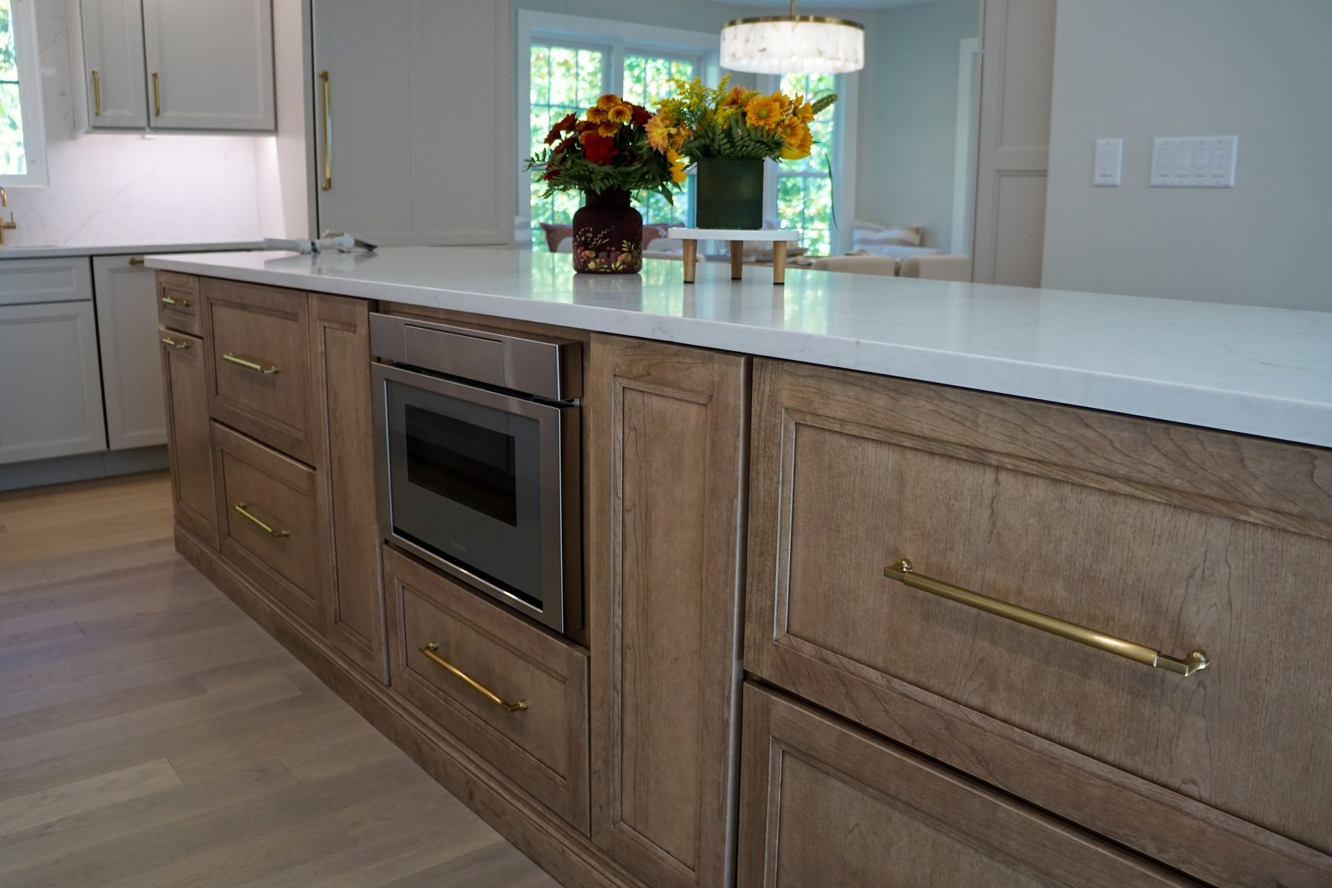 The homeowners wanted to refresh their entire builder-grade first floor to better suit their family’s lifestyle. By opening up the layout, brightening the space, and incorporating warm wood tones with elevated finishes, Camila from our Windham showroom designed their dream first floor — a welcoming space made for everyday living and entertaining family and friends.